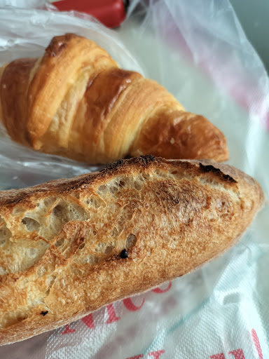 バゲットはしっかり焼き込んであり、手で引き千切るバリっと感を楽しめます。中はモチっと粘りのある噛み応え。見た目とは裏腹に小麦の香りは優しく一本そのままでいけます。 クロワッサンは綺麗な層で膨らみパリパリ食感。バターの主張が強めで、ひとつで食べ応えがあります。