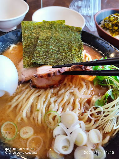 (2021/05/04) 同僚に誘われて、無化調(化学調味料を使わない)という「のとやま」さんにお邪魔しました。 1000円のコースがいいよとのことで、コースのラーメンの種類をV(豚骨醤油+ナッツ)かZ(豚骨と魚介)で選択、わたしはZにして高菜メシにしました。 しばらくして着丼、つい大盛無料にしたら麺がぎっしり。 スープを一口、豚骨醤油+魚介スープは、うん、確かによくある感じかな。悪くない。 同僚のナッツのスープを一口、ナッツの方がまろやかで好みだった。 チャーシューはそこそこの厚さのものが2枚、柔らかさと味わいはGOOD。 麺が多いのにどうやら器は普通のようで、スープが足りない印象。麺がほぐれない。塊でくっついてるのはどうしたことだ。 もっとスープが欲しい。 器を一種類でいくなら、麺は大盛無料じゃなくて半替え玉一回無料とかのほうがいいんじゃないかと思った。 手間はかかるかもしれないけれども、普通盛りか大盛りで迷う人が「麺が多すぎた!」と反省することがなくなるし(それわたしね)、エコにもなるでしょ。 それと、今回お腹いっぱいになったので「すぐまた来るぞ」という気にならなかった。なぜなら満足しちゃったから(笑) もしくは器を変えて欲しいなぁ。