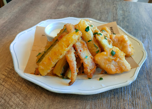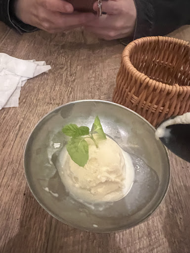 17時コース予約で来店 店内には数組のお客とウェイターが2人歩いてました。 ガラガラ空きです。 平日の17時では、こんなものなのかなと。 テーブルに案内され、メニューのQRをスマホで読み込んで飲み物をオーダー。 1710 ドリンク来たので乾杯 1725 いつまでも料理が来なく、ドリンクだけで時間経過。 会話ははずみましたけど。 たった1杯の飲み物で摘む料理も無く会話… デートだったら苦痛ですよね。 あまりに遅いので店内をを歩いている店員に確認。 1728 3分後に下に記載した料理の皿が2つ同時に、特に何も言われる事も無く普通にテーブルに置かれました。 予約の名前を告げて最初の料理が出るまで約30分。この店での料理の提供時間としては普通なのかもしれませんが、30分経過した事に一言も説明もなく置かれたのは社会人となって30年になりますが初めての経験です。忍耐と社会勉強になりました。ありがとうございます。ちなみに店内は見える範囲では数組の客だけ。混んでいません。