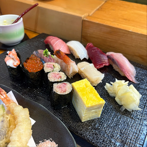Read moreとにかくお寿司が美味しいと聞いて訪れた。日曜日の12時半過ぎ。丁度一組出て来たので入れ替わりに入れたが、満席のようだった。ランチの握りには全てサラダ、味噌汁、茶碗蒸し、デザートが付くというので、ランチの匠(握りと天ぷら)と星(多めの握り)を注文。お寿司はどれもネタがいいのがわかるし、仕事が綺麗というのかな、本当に美味しそう(美味しい)。シャリは赤酢、握り方や量がまたいい。セットのサラダのドレッシングがとても美味しかったし、茶碗蒸しも上品なお味。味噌汁も具だくさん。そしてデザートの美味しかったこと。杏仁豆腐だったが、その舌触り、杏仁霜の香り、最高に美味しくて丼で食べたかったくらい。お店の方は板前さんもホールの方も、皆さん明るくてよく気が付き、初めてだったのにとても居心地が良かった。和洋中何でもありの超豊富な小皿やアラカルトメニューがどれも実に魅力的で(焼き物や煮物はもちろん、ピザまである)、次はアラカルトと握りかな…。家から近かったら通い詰めそう。とてもいいお店に出逢えた。 駐車場はお店の裏と周りに数台分。他にもある...
