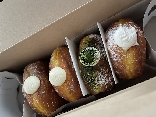 ドーナツは1日1回の入荷で 行列必至 (現在は2回) 抹茶とチョコレート味を食べたが 抹茶が濃厚で美味しかった でもオススメは行列無しで買える カヌレかな? まだ少し店員さんも不馴れで まごつく場面もあるけど頑張ってね
