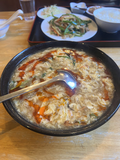 前から気になっており、祝日の昼下がりに大人2名で初めて訪れました。 店内は3組ほどお客さんがいらっしゃいました。 ボックスタイプのテーブル席が4つほどと、座敷テーブルが3つほどあります。使ってなさそうでしたが、奥にめちゃくちゃ広い大広間が3部屋ほどあって団体でもいけそうでした。 ランチメニューはいずれも1000円以上しますが、ボリューミーで食べきれないほどでした。 私は単品でスープを頼みました(670円)が、かなり多くて、テイクアウト出来ないか伺いましたができないようでした(勿体無い...)かなりコスパいいです! 飲み・食べ放題メニューがありめちゃ安いです。 あと、火曜日はビールと紹興酒が半額らしく、また夜に訪れたいと思いました。