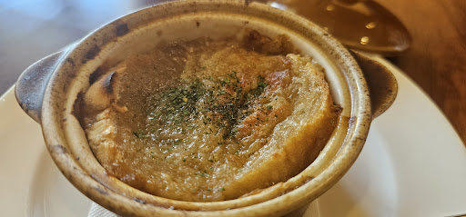 To top that, the local version serves food that is even better (the special onion soup, hamburg and steaks) attentive staff, quick service.