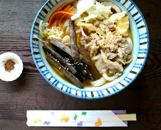 Udon noodle soups with varied toppings, whipped up in a spartan, casual dining room.