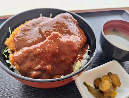 Read more深川そばめしの幟が入口でお出迎え、市立病院6階で一般開放されているレストランでチキンカツ丼を。丼の上の薄く削いだ柔らか歯応えの鶏胸肉のカツ3枚に掛かるのは、温かいデミグラスソース。ごはんや千切りキャベツと併せても極めてヘルシーな量と味付けなのは、院内食堂ならではですね。 最上階の明るい店内で、窓から音江連山を望みながらのランチは気分よく...