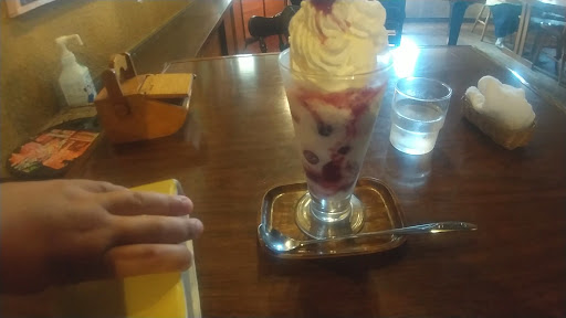 Read more昔からある喫茶店 薪ストーブとマスターが手動の焙煎機で自家焙煎しているコーヒーが良い感じです。 カウンターに座ると何時間でも居座りたくなる雰囲気 フレップジャムを使用したふれっぷパフェと甘さだけではなく苦味を調和させたコーヒーパフェが私は好きです。