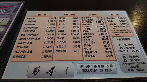 Read more深川駅前にあるお寿司屋さんです。店内も綺麗で個室メインの作り。バイクで1人で寄ったが、個室に案内してくれました😊ランチメニューも気になったが、「刺身・天ぷら定食」を注文。マグロが上等だし、ホタテも生ホタテだし、天ぷらもエビがメインで、衣が薄く、エビもプリプリで美味しかった😋お店の方も丁寧で好印象でした🙆若大将?なのかな?バイク乗りのようで、食事後、玄関前に出て来てくれて、自分のバイクを誉めてくれたり、少しバイクの話が出来ました。バイク好きだって分かりますよね✨😊