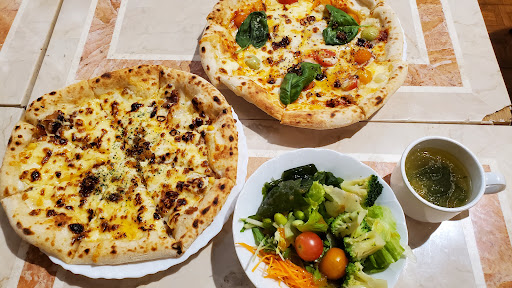 Read more※平日の評価、土日祝はわからないです 写真はテリヤキチキンとコーンのピザ、マルゲリータ(と称するピザ)、サラダバー(8種類ぐらい?)、スープバー(中華風スープ)、です。