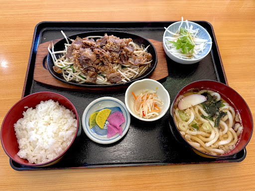 深谷方面に用事があったので寄ってみることにしました。駐車場は下手なファミレスより広いです。もしかしたら店内のテーブル数より多く置けるのでは。 11時ちょっとすぎだったためか一番乗り。お好きなお席へどうぞと言うので手前の席に座ります。 入口に書いてあった日替わりが良さそうだったからそれでいいかなと思いつつ、一応メニューを見ると驚いた。お昼の定食だけで16種類?グランドメニューの膳や丼を入れたら何種類なのやら。その中でもなんとなくセンターに当たるのがスタミナ系な気がしたので、「牛肉のスタミナ焼肉ランチ」を温かいうどんでお願いしました。 登場したお盆を見てしてやったり。鉄皿の上にたっぷりのもやし、さらにその上に牛バラ肉。思い描いていた以上の「スタミナ焼肉」な見た目と香りです。 ニンニク甘辛のタレがご飯を呼ぶこと。もやしがこんなご馳走になってしまっていいのか。ご飯大盛り無料はまさにこの味だからこそのサービス。 味噌汁でなくミニうどんというのも思い切りが良いですね。思いのほか薄口のダシと柔らかうどんは確かに汁物ですが、食べてみるとさすがお腹にたまる。 ボリューム満点ランチで千円を切るのは嬉しい限り。豚肉スタミナも食べたいし、ランチにはないけどレギュラーメニューにあったカツカレーも食べたい。いや鶏の唐揚げだってきっと‥深谷への用事を増やしてし...