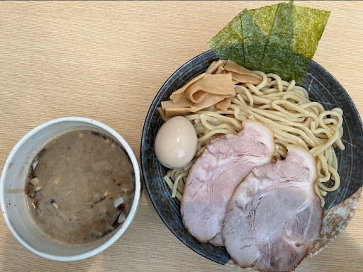 トッピング チャーシューは大判のものが2枚。柔らかく、味付けは濃くないが、豚の香りと旨みが優しく広がる。つけ汁にも負けていない。 味玉はトロッと半熟タイプ。提供は温め。黄身の甘さが際立っており、つけ汁との相性も良い。 メンマはジョキジョキとした歯応え、塩味は強すぎず弱すぎず、丁度良い。 海苔は小さいものが3枚。やや口に残るが、小さいのでそれほど食べづらさは感じない。香りは弱い。