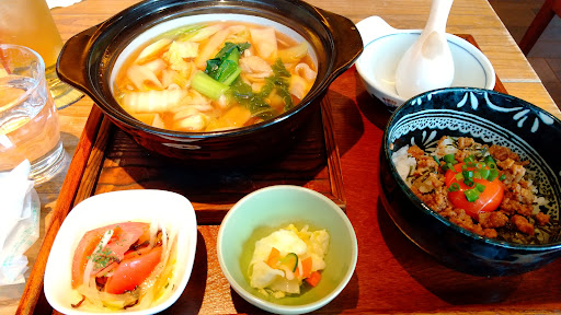 It's a small cafe surrounded by a residential area. There are only about 30 seats, and almost all of them are at tables (one table is large, so it's used by one or two customers together). The street in front of the cafe is narrow and the parking lot is not very wide, but even so, many customers come here every day, especially on holidays when there is a waiting line. Although the name of the restaurant says "cafe", by the dishes served, it's almost a restaurant. The main dishes are set meals using vegetables from Fukaya City, and although there are not many desserts, there is a wide variety of soft drinks (alcohol is available at night). As each dish is carefully prepared and served, it takes a little time from ordering to serving. The turnover of customers is not so good, as you can see people coming in with their friends or families, chatting and eating together. Although I recommend this cafรฉ, it would be best to allow plenty of time...