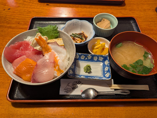 2023.12 平日のランチで利用。メニューはその時の入荷で決めているようで毎回異なる。その為メニューの紙は1枚しかないので、他の客が見ているときはちょっと待つ。 久々に海鮮丼(1000円)を注文。乗っているネタは10種類以上で、美味しい。食後にコーヒーが出る。 ここは焼き魚も旨いし、魚が苦手な人にはヒレカツ定食もある。 情報が古くなったので、写真は全て変更しておこう。