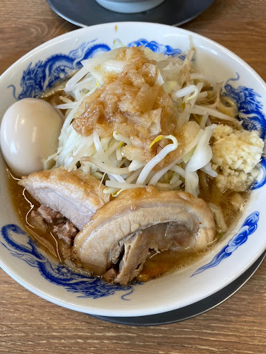日曜11時の開店時間に初来訪。駐車場には3台ほど停まっている状態で思った以上に空きアリ。入って右手に券売機があり7人ほど並んでました。ラーメン(並)¥790を選びカウンターに。食券をカウンター上に置くとすぐに女性店員さんがトッピングの確認に。ヤサイダブルアブラニンニクトリプルでオーダー。10分ほどで着丼。ヤサイをダブルにすると別丼で提供されるスタイルで、その量に少し圧倒されてしまいました。イメージ的にはスーパーで売ってるモヤシ2袋半ほどの量でしょうか。ラーメン(並)にもモヤシ1袋分ほどの量が既に盛られており、全部で3袋以上のモヤシがありそうな見た目です。スープは熱々、麺はやや固め。並は麺200gみたいです。ヤサイが減ってきたら別丼から追加してカエシで味変。ちょうどエアコンの真下から近い席だったので涼しいながらスープの熱さで汗をかきながら快適に食べられました。店員さんの接客も良く、初めてでコールが分からないお客さんにも丁寧に説明していて好印象。店内も清潔で回転も早く良いお店だと思います。何より値段が安いのが最...