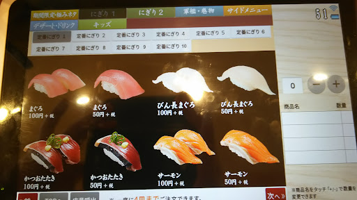 注文してから届くまでを極力オートメーション化してあるため、実にスムーズで早い。そして効率が良い。 具体的には、寿司皿とは別の醤油用小皿も各セクションに必要量だけ置いてあり、湯呑みも同様に必要量だけ置いてある。一時期、醤油用小皿が省略されてた事があったがやっぱり醤油専用の小皿は要るので復活してくれて助かる。むしろ以前のようにとにかく山盛りに小皿や湯呑みが置いてあった時より快適になったように感じた。 注文品の特急レーンも以前のように往復方式ではなく、誰かが取ったら逆回転せずにそのまま他のお客さんの注文品を即座に送り出す一方通行のベルトコンベア式になったので時短になった。 あまり回転レーンにネタは流れておらずむしろ、まるでこの特急レーンがメインのようになっている。 更に、注文品が特急レーンに流れてきた際に1皿に4貫乗ってたりしたので「何だこれ、いいのか?」と思ったのだが、最終的な会計額は注文用の端末からの『ネタと注文数のデータ』がコンピュータによって一括管理されていて、その注文履歴データですべて決まる。 したがって店員さんは皿の数を数えない。 皿の数はもはや関係ない。 これも時短である。 しかも注文品は全てきちんと手元に届いたかどうか端末画面で念を押して確認してくる。 『回転寿司』という物の固定概念を崩しにかかってきている。いや、もはや回転寿司…ではないかもしれない(笑)