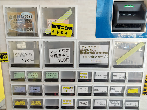 豚骨ラーメン並(930円)をポチ。 無料トッピングは野菜、脂。 麺量は並で200gか?中盛りも無料で増量できるので中盛りにする。
