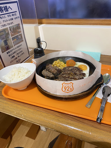 Read moreわくわくダブルっていうのを頼んだんだけど、ステーキが絶望的にまずかった。。。臭いし、筋硬いし、ホンマに牛かこれ? ハンバーグは普通でした。