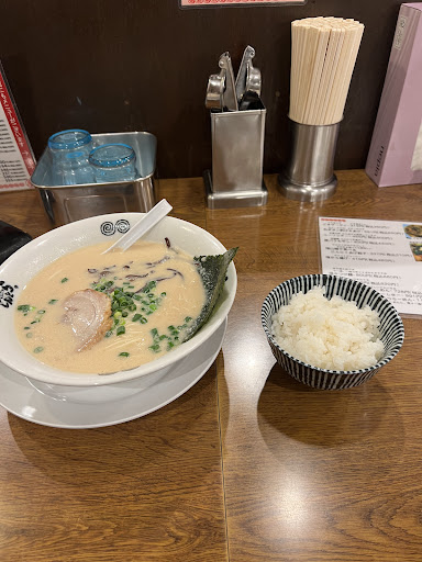 麺 ややポキっとした歯切れの極細ストレート麺。低加水だが、麺の硬さが選べないせいか豚骨らしい固さや歯応えはなく、コシがそこそのある普通の麺という印象。醤油や塩でも合いそう。豚骨スープとの相性も悪くないが、決して良くはない。