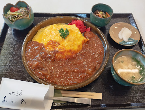 Read more田川郡福智町上野にある【こだわり食房あが乃】さんに少し前になりますがランチにお伺いしました 上野の里ふれあい交流館の敷地内にあるお店です 通りから、山手のほうに上がっていったところにあり、駐車場はとても広いです 上野の食材を使った、地産地消にこだわったお店とのこと 店内はテーブル席が数席 アットホームな雰囲気です 今回はお店名物のあが乃ライスをいただきました 器は上野焼きが使われていてとても素敵でした サラダにお味噌汁、地元のお野菜をたっぷり使った小鉢もついていました ふわふわ卵がのったご飯には、上野の土をイメージしたデミグラスソースのハヤシソースがたっぷり とても美味しいあが乃ライスでした 田川名物のホルモン料理や、だんご汁、高菜ライスも気になりますので、また是...
