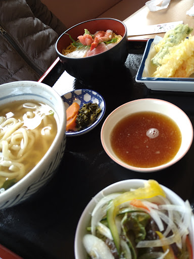 Read more日王の湯に付帯した食事処 入口は日王の湯の正面玄関から 食事だけの利用でも大丈夫 こういった施設内の食事は…と期待薄でしたが、魚もおいしく揚物も良い 何よりご飯がピカッとおいしい メニューは魚料理と揚物の構成 他にうどんもある メニューにより、お得に感じるものと又逆に感じるものがある 雰囲...