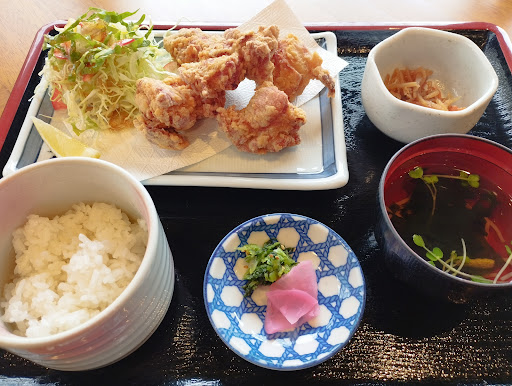 唐揚げは5個付いてました。 どちらかと言うと 生姜派の優しい感じの味付けでした。 これはこれで、ジューシーだったし、私はすきかな♡