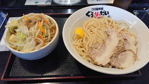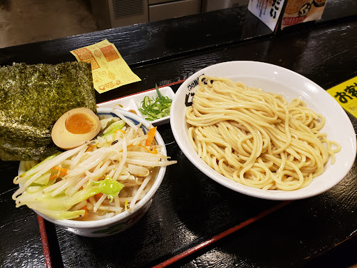 Read more福知山に来られた方にぜひおすすめしたい店。JR福知山駅北口から徒歩1分程度…専用🅿️はないですが駅前駐車場が60分まで無料なのでそこを使うと良い。店内に入ると食券を買い席について出すシステム。 私のおすすめは「野菜つけ麺」。初めて見た時はそのボリュームにびっくり。野菜はもやし-キャベツ-人参(千切り)。野菜をのけないとスープが見えない。12番と呼ばれる太麺をまずはスープもつけずに麺を2〜3本すすり、麺自体の味や食感を楽しむ。