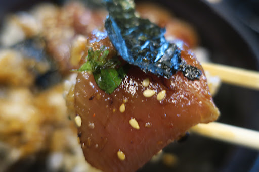 福知山温泉養老の湯で湯浴みの際に立ち寄りました。メニューは一般的です。いろいろ迷って鉄火丼をオーダー。日本庭園を見ながらお料理の到着を待つのも悪くありません。 鉄火丼はまぐろのズケの塩味がちょっと強かったですが、お味噌汁は出汁が効いていて美味しかったです。