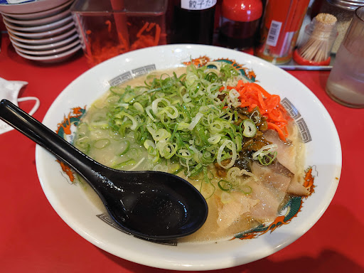 Read more塩味強めのサラサラあっさり系とんこつにコシのある細麺。スルスル入るので二日酔いとか疲れてる時にはいつもの1.5倍増しに美味くなる魔法付き😆 あっさりスープだからか腹に溜まりにくいので、ここでは大盛りかライスや餃子とセットで注文するべし。