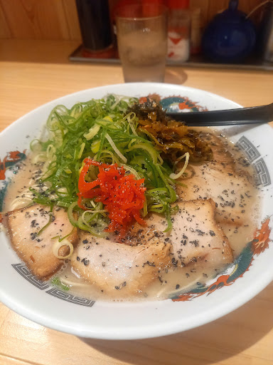 Read more本場長浜の豚骨ラーメンが現地に行かなくても食べられます。北近畿では1位か2位を争うほど美味しい本格豚骨だと思いますね。 九州ナンバーのトラックもたくさん利用されてます。 麺は細麺のストレート バリカタ注文するのがオススメ スープ わりとあっさりしてるが豚の頭から抽出したスープはしっかり旨味があり濃厚 チャーシュー 半年以上前あたりからスライサーを導入されたようで以前より薄め、脂身も減ってる。個人的には以前提供されてた厚みのあるチャーシューが美味しかった。 紅生姜、高菜は無料サービス。特に高菜は持ち帰り販売されてて非常に旨い、ラーメンにもご飯にも合います。 店員さんの接客も愛想良くて満足度は非常に高い😊 餃子も結構好きでいつも必ずオーダーします。もう少しボリュームが欲しいところですが(笑)