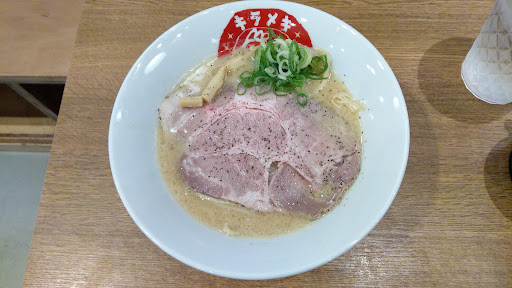 Read more2020/10/10: 気になっていたお洒落なラーメン屋さんに突撃してきました。 私が注文したのは「濃厚鶏白湯(大)」にキラメキスペシャルトッピング。 さすが濃厚を謳うだけあって、スープはどろどろポタージュ系。 大好きな天一のこってりよりも濃い感じで、若干ザラつきがあるスープでした。 シャキシャキの玉葱がアクセントになり、なかなか美味しいラーメンでした。 トッピング無くても充分だったかな? 次は「台湾まぜそば」に挑戦します!