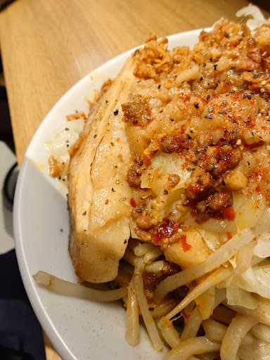 2020/12/19:再訪 今日は台湾まぜそば「直太朗」を食べに訪問。 人気がある店なので、待ちが5〜6組。 まぁ、これくらいは想定内です。 本日は1人で突撃の為、比較的早くカウンターに通していただき予め買っておいた食券を店員さんに。 まぜそばは「小・中・大」と「特大・メガ」がそれぞれ同一値段だったので、迷わず「メガ」を注文! 油そば・まぜそば系も、最近は関西でもメジャーな存在になってきたので、迷いなく混ぜ混ぜ。 んー、刻みニラとニンニクと肉そぼろとがうまい具合に絡まってワシワシ食感系の太麺が旨い! あっという間に残り僅かに··· いかん!カウンターに置かれた調味料で味変するのを忘れるところだった(汗) という事で、今回は最後に酢を回し入れてサッパリに。 ほんの少しの追い飯もサービスで付いているので、最後に残った具材と共に口の中へ。 いやぁ、メガ盛りは結構食べ応えがありましたが、汁なしなので余裕を持って食べられました...