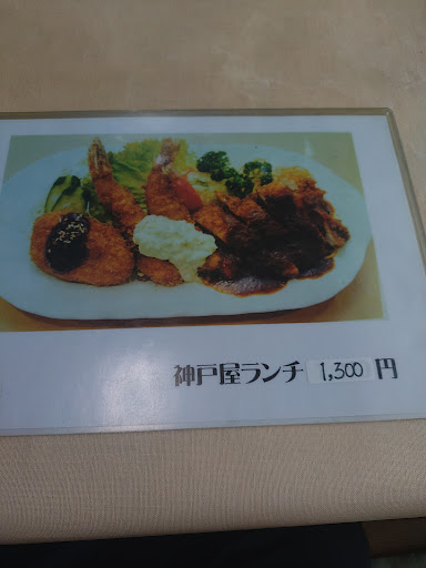 Read moreSNSで紹介されてて気になったので行ってみた。平日11時過ぎ1人目で入店。駐車場は店舗横の同じ敷地内にあり、頭から突っ込むと転回が面倒くさいのでそのまま頭から駐車するかそもそもバックで入るか。私は他に車が居なかったので駐車場内で転回しバック駐車。 神戸屋ランチを注文して待ってると1人目だったからかかなり早く運ばれて来ました。写真の通り結構ボリュームあって野菜も摂れて1300円ならコスパ良し。 揚げ物はサクサク、ソースは手作り?で美味い、コロッケも手作りなんですかね?美味しかったです。カレー味と酸味のついたモヤシも美味い。味噌汁かと思ったら違くて野菜タップリの塩味系のあっさりしたスープでした。たっぷりの玉ねぎとキャベツ、大根、人参、ネギが入っててこれも美味い。小鉢はカボチャの煮付けで、ひょっとしたら日によって違ったりするかも?最後にみかんゼリーを食べてフィニッシュですが、このゼリーも手作りですかね?美味しかったです。 後から入って来たお客さんも神戸屋ランチをよく頼まれてるので人気メニューなんだと思います。他にも美味しそうなメニューが幾つもあったのでま...