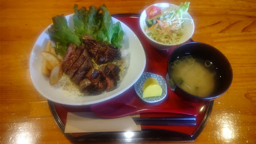 福井出張の際にランチで伺いました。 カウンター席は9席のうちコロナ対策で 5席可能、テーブルは大小7卓以上あって 雰囲気もとても良かったです。 初訪問なので、口コミで評判のステーキ丼 をオーダー。 お肉は良き焼き加減で少し焦げ目が 着くぐらい、ライスにはたっぷりと少々 甘味もあるステーキソースがかかっており とても大満足でした。 またスタッフさんの接客も丁寧で心地よく ランチを過ごせました。 他のオムライスやスペシャルカレーも 美味しそうだったので、次回の福井出張でも また再訪したいと思います。