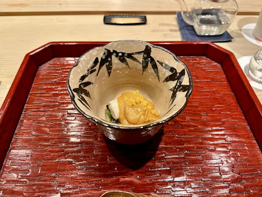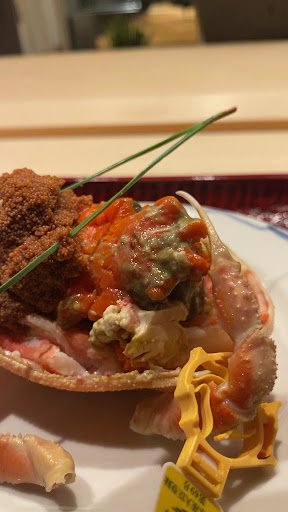He started the meal by offering me a sakazuki (a ceremonial sip of sake), then set up his cutting board right in front of me, and he just went to town with that crab. Everything was expertly prepared, beautifully presented, and exquisitely flavored. Fabulous choice of high quality local ingredients, and every dish was perfectly executed.