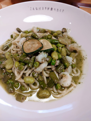 Read moreランチで行きました。メニューは少し分かりにくく、理解するのにちょっと時間がかかりました。ご説明いただけるとよかったです。パスタは海老のクリームパスタで追加200円で生パスタに変更しました。生パスタはモチモチで美味しかったです。ソースは美味しかったので乾麺でもいいかなと思います。パンが売りのようでパン食べ放題コースを選択されている方が多いように思いました。バターも何種類かから選択できます。選んだコースはパン2切れ付き、セルフで好みのパンを取りに行きます。1切れ4分の1くらいのパンだったので、パスタの量考えると満腹にはちょっと少ないかなという印象です(出来ればもう一切れ欲しいところ)。ドリンクも1杯ついてきますがセルフです。他のイタリアン店のコースには無い、パン食べ放題があるのでパン好き...