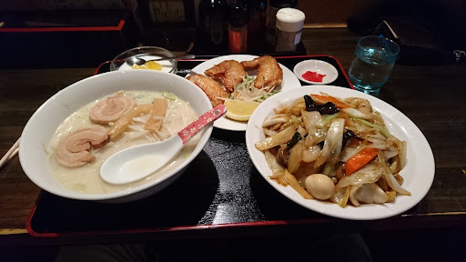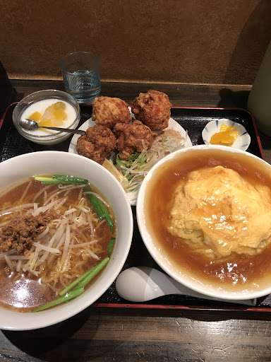 Read more出張でよくくる福井です!! 気になっていたので来てみました!夜10時頃の定食です 台湾ラーメン定食お値段なんと・・・1,100円??だったかな・・忘れてしまいましたすみません 駐車場は後ろにいっぱいあるので気軽にいけますね! 驚くのはこの値段でこの量はコスパがいい! どれも一人前レベルの量でした、少食な自分にはちょっと多すぎて残してしまい申し訳ございません! 種類が多いからか提供時間は遅めです、1人でこれを仕上げるのは大変だろうなぁと思いました。 いやぁでも唐揚げやばいです!大きさがなんで丸めてあるのかはわかりませんが大きいです!添えてある塩みたいなのも味変して良かったです。 味については・・唐揚げは油っぽくて無理でした、天津飯は普通ですね、ラーメンもあんまり辛くなく食べやすい感じでしたよ 付いてたレモンがちょっと古い感じで色が変わってたのがすごく気になりました。