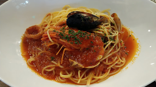 ランチにて。 入り口の扉を開くとパン屋の美味しい香りが出迎え期待が高まる。レストランの扉を開くと白熱球の温もり、白い漆喰の壁、窓から差し込むレースカーテンを通した柔らかな光が差し込み暖かい雰囲気、イタリアンの香りと賑やかなお客の談笑に包まれた店内。その日は家族連れが満足そうに食卓を囲む姿や、カウンター席で語り合いながら食事をとる男性二人、日々の何気ない出来事だろうか目を細めつつ語り合う男女、数人の女性達によるささやかでも明るい女子会。そのすべては料理の美味しさを物語る。 暫くの間お休みになっていたサラダ以外のビュッフェが再開されていた。その日出されていた南瓜とひき肉のグラタンの優しい甘さと旨さは嬉しい前菜だった。去年はサラダのみのビュッフェだったのが残念だったが実に有難い。時折内容が変わる故、いずれまたその料理の再会を希望する。 この日はメインにペペロンチーノを頂く。食通ではない為どう美味しいのか上手く表現できないが、旨さを貪欲に吸い込んだオイルと唐辛子の程よい辛味がパスタに絡んで癖になり、初夏に訪れたことも相まって食がすすむ。食べ始めはアルデンテの食感を楽しみ、料理の熱によって徐々に芯が柔らかくなり噛み応えが変化する。そして食べ終わる頃にはまた別のもっちりした食感が待っていて箸休めは不要、茹で加減が私にはちょうど良い。最後にサービスのパンにオイルを付ければ口一杯に美味しさが広がる名もない一品に。これもたまらない。 確かに細かな至らない点はいろいろあろうと思うし、ある事にはある。しかし、私は美食家でも審査員でもない。ただの客だ。だから細かいことは気にしない。むしろ気にさせない味と雰囲気、家族一丸で一生懸命に作り、そしてもてなす姿勢故に私にとっては誰がなんと述べようが個人でも家族でも足が向くお気...