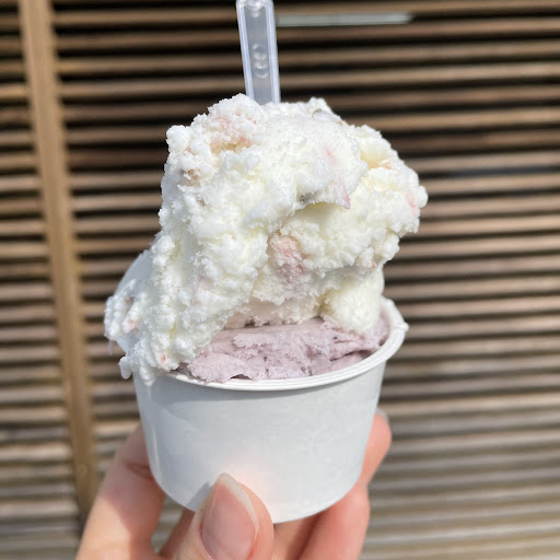 Read more地元野菜やお菓子が売っているお店. 小さな道の駅という感じ. その一画にジェラートもあります. レジ横にアイスケースがあってそこから食べたいものを選び、店員さんに伝えてお会計. 味の種類は色々あって、カボチャやニンジンなどの野菜フレーバーからミルクやチョコなど王道もあり. 今回はさくら🌸とブルーベリーミルク🫐 カップにこんもり盛ってくれました! さくらは風味だけじゃなくてお花がそのまま入ってて珍しい! ブルーベリーはあっさりで美味しかった. ヘルシーなジェラートを...