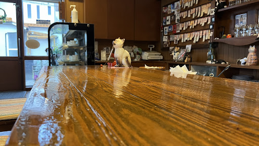 かなり昔から営業されている、いわゆる昔ながらの喫茶店で、ログハウス調の店内はとてもオシャレで好感が持てます。60代位の女性が経営されているようです。コーヒーを戴きましたが、普通に美味しく満足しました。 ただ常連さんと思われる年配の女性方の声が大きく、その方のカウンターに肘をつく度に振動が伝わって不愉快でしたが、まぁその辺は愛嬌ということで大目に見ていました。 居心地が良いかというと、常連さになればそれなりに良いのかもしれないけど、Wi-Fiがあるわけでないし、人によっては満足度は違うと思います。 レジ前にショーケースにいろいろな種類のカップが並べてあり、1,000円〜3,000円位の値札がついているんですが、あれは購入するのか、マイカップにするのを選ぶのか不明です。 あと、PayPay等には対応していないよ...