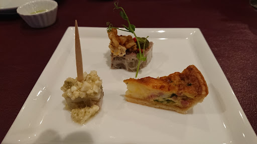 前菜 どれも美味しかったのですが、他のどのお店よりパテがおいしいです。車故お酒はなしですが、お酒で食べたい美味しさでした。 メインは+αで子羊のトマト煮、主人は豚ロースでした。 両方シェアしましたがどっちもよかった。子羊はほろほろ、豚はしっとり。デザートも無花果のタルトとカシスのシャーベットで申し分なしでした。主人はこの価格でこれだけ出してもらえて満足していました。ミシュラン掲載のお店でした。