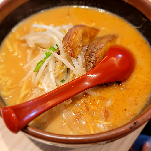 Read moreとんこつラーメンが主流のここ福井に、まさに殴り込みという感じの味噌ラーメン専門店。どうやらFC展開されているラーメン店で、福井では1号店(2022年4月開店)のようです。 基本の味噌は、北海道、信州、九州と3種あり(期間限定で他地方の味噌も加わる)、それぞれに独特の味わいが楽しめるというラーメンでした。 トッピングがだいたい似通っていて、そこに合わせる味噌がそれぞれに違うと考えるといいかもしれません。 北海道味噌は濃厚味で、味噌というより、かなり味わい深いテイストになっていました。比べて信州味噌は味噌の味がしっかりとしており、北海道味噌よりはコク味ではないものの、こちらも濃厚です。九州は中では一番落ち着いた味で、味噌味というよりはもっと落ち着いていて、独特のテイストでこちらもGood。 トッピング類も多く、味噌単体での販売も店内で行われています。店内北側、待合スペースにはいろいろな味噌が置かれているので、一度見てみるといいと思います。 さて、他の点でちょっと気づいたことですが、提供がかなり、かなり遅いです。これがこの日だけだったのか、そうでないのかわかりませんが、他のラーメン店ではあり得ない遅さで驚きました。それと、ラーメンによっては温度が低いものがあり、正直「ぬるい」ラーメンになっていたのが残念でした。それと、想像以上に濃厚で、悪く言うと塩っぱくて、薄味好みの人にはなかなかの試練となるでしょう。私の場合、スープを飲み干すことはできませんでした。特に北海道味噌はこの部類にあたるので、注文時は留意ください。 しかしながら、味噌ラーメンとしては申し分のないラーメンで、また行きたくなりました。いろいろなラーメントッピングがあるの...