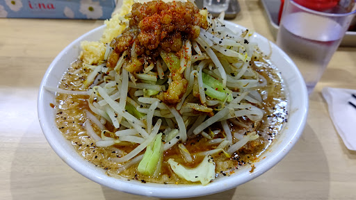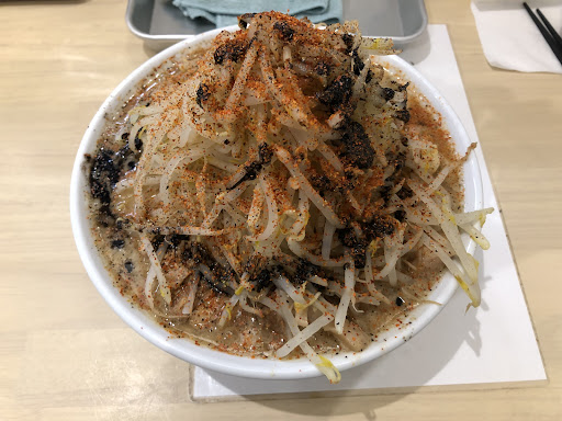 から選べました。 味付けに関しては、白がベースで赤だと七味、黒だとマー油が足されるみたいです。 ここでは初二郎ですが、珍しいもの見た差で頼んだので、好奇心に負け、赤黒 300g 野菜多め...