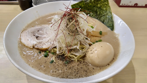 Read moreかなり濃厚な白湯ラーメンのお店です。 かなり濃厚と表記しましたが、どろっどろ、というか最早鶏で出来た泥(誉めてます)。 そのビジュアルと食感故に苦手な人は苦手だと思いますが、個人的にはめちゃくちゃ好きです。 他店と比べるのは良くないのですが、長年関西でグランプリを受賞している白湯ラーメンのお店より好きかもしれません。 ここまで煮詰めてあると普通は独特の臭みが出てくると思うのですが全くなく、美味しくて濃厚です。 多分スープだけだと単調な味になっていたと思うのですが、上に乗っているタマネギとブラックペッパーが程よく味を変えてくれるので食べていて飽きがきません。 非常に良く考えられたラーメンだと思います。 価格も一杯800円と最近のラーメンで言えば標準的な価格。 むしろこの濃厚なスープなら多少安いかなとも思います。 スープがほぼ固体なので食べた後の満足度も高いです。 近所なら通っているレベルです。 店員さんの対応も良く、店も綺麗でした。 店前の駐車場が停めにくいのだけが難点ですが、その程度です。 他県から出張で来ている身なのですが、福井県にまた来る事があれば是非また来たいと思います。 今のところ県外からまた来たいと思ったお店は福井県内ではここだけですね...