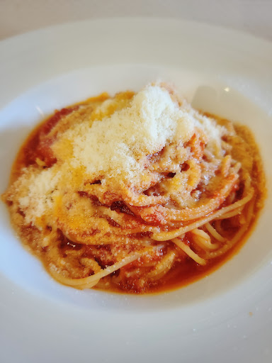 そしてメインのラグーソースパスタには、たっぷりのチーズ!フォークにチーズが絡まって取れにくいほど。トマトとチーズをたっぷり食べたかったので、これは嬉しい。ソースのお味は、トマトベースで優しい甘み。ひき肉の味がしっかり感じられます