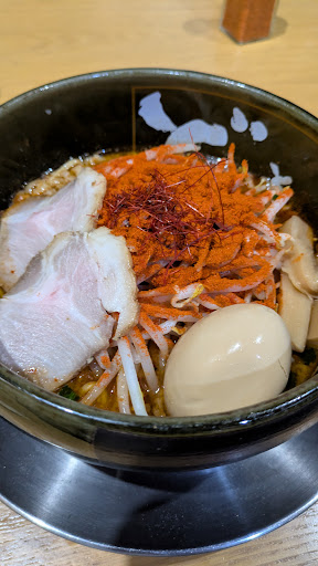 Delicious miso ramen with a heavy, but slightly greasy taste. Thick and soft noodles, good variety of ingredients to add depth of flavor. I selected the spicy one, with two spice level options. Not bad overall, but a bit pricier at 1100¥. Worth a visit...