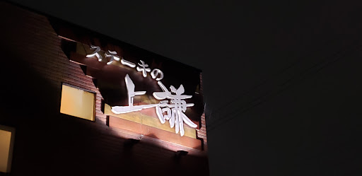先日初めて行ってきましたステーキの上謙。ここは、一言で言うなら、ファミリー向けのステーキ屋さん。でも、一般的に知られているファミリー向けのステーキ屋さんとは1ランク上のステーキ屋さん。リーズナブルなステーキから、拘ったお高い高級なステーキまで、何種類かあります。店長お薦めメニューがあったので僕はそれを食べました。なかなか美味しかった! お肉もそんなには硬くなかったです! ...