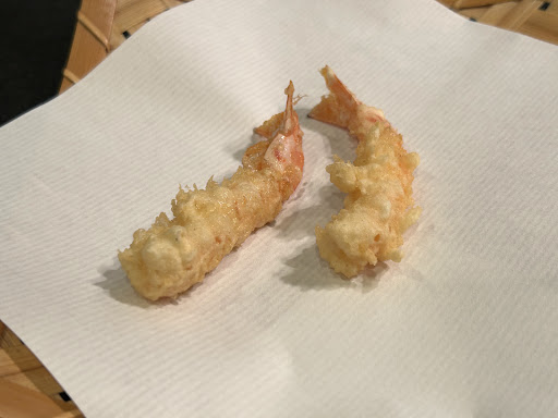 そして我々が頂いた天ぷらは以下です。 ◯エビ2尾 & 頭揚げ →小さめのエビでしたが、温かくて弾力があって美味しかったです。エビの頭の揚げたものは海老味噌が美味でした。