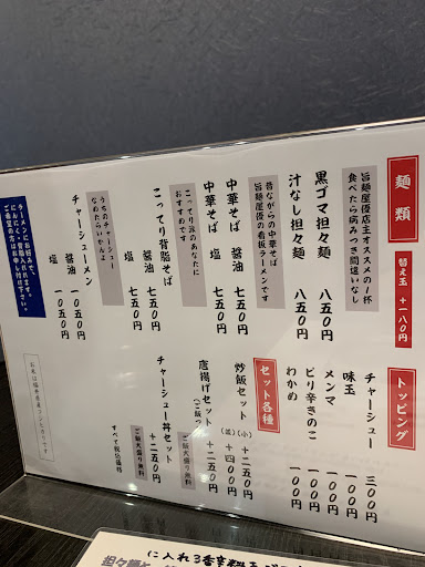 Read more初めて来ました!! お昼の終わり頃だったので空いていました はじめてだったので取り敢えず黒胡麻坦々麺を、坦々麺が美味しい聞いてましたので 太麺か細麺か選べるスタイルです。 もちろん太麺!!やっぱ坦々麺は太麺ですよね個人的にはですが・・・ 見た目通りの味でとても美味しかったです! そんな濃厚でもなくわりとあっさり食べれます、坦々麺好きの人は濃厚なのが好きな人多いので意見が分かれるかもしれません 最後まで食べれるように穴付きのスプーンまで用意されてました、心遣いを感じますね 坦々麺以外にもメニューがあるので次は違うものに挑戦して行きたいと思います。 チャーシューが美味しそうにメニューに書かれてたので楽しみにしてます。 安心して食べれる感じなので皆さん食べてみてはいかがでしょうか? また行きたいと思いま...