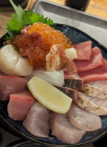 We were recommended to this place while buying some snacks in the market. Indeed all the dishes were very fresh and delicious not only that food portion were rather filling too. No queuing,when we visited (unlike the other stall where many Instagram personnel & YouTubers rave about & also the Q were super long...). We were immediately shown to our tables & you can scan and order from their English menu too. The place is spacious too. We ordered their sashimi prawns (very very fresh) Uni,sashimi,oysters,fish liver and etc. They have cooked food too incase those travelling with young kids and old folks. They have children chairs available and it's wheelchair accessible too. We spend around 45mins having our lunch and when we came out,we saw that the Q from there barely moved with many hungry floks still joining the Q... Do try it out while you are there. It's location is along the stretch right behind the long Q stall and you can find them when u see a small ice-cream cone statue on your right while you walk...