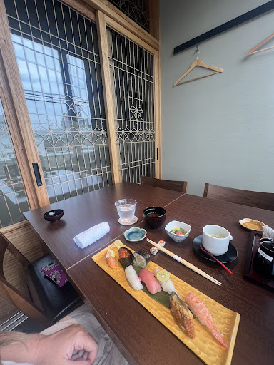 I was very impressed. Before coming to this restaurant, I did some research and looked at photos. I saw that eating quality sushi not only nourishes the body, but the river view also nourishes the soul. The small, thin brown building is striking but eye-catching. I chose the 4,500 yen lunch set menu because I was interested in the sea urchin, ikura, large shrimp, and otoro. The fish was of high quality, fresh, sweet, and refreshing. The lunch set includes steamed eggs, soup, and a small appetizer. The chef will introduce the fish and its origins, as well as the sauces that go well with each type of fish. The restaurant is currently offering a happy hour where drinks are 50% off. I will definitely be back. Thank you so much for this...