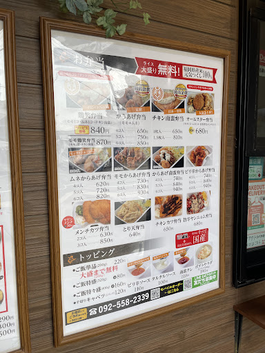 Read more笹原駅の近くにある唐揚げ屋さんで比較的新しいと思います。 半年前に買おうと思ったら結構お客さんが多くて買えなかったので電話で注文して取りに行きました。 電話で対応してくれた女性店員さんが丁寧に聞き取りをしてくれ、クーポン使用の有無も聞いてくれました。 初めての購入でしたがライン友達に追加してクーポン使用することもできると教えていただき、クーポンを使うこともできました。 唐揚げは大きく、さくっとしていて美味しかったです。 むね肉は少し固いけど、モモ肉は柔らかくてジューシーで美味しかった! 女性なら2~3個あればお腹いっぱいになると思います。 ラインのポイントカードもあり、五回購入するとプレゼントがあるそうです。 値段と大きさと味で考えると決して高いわけではないで...